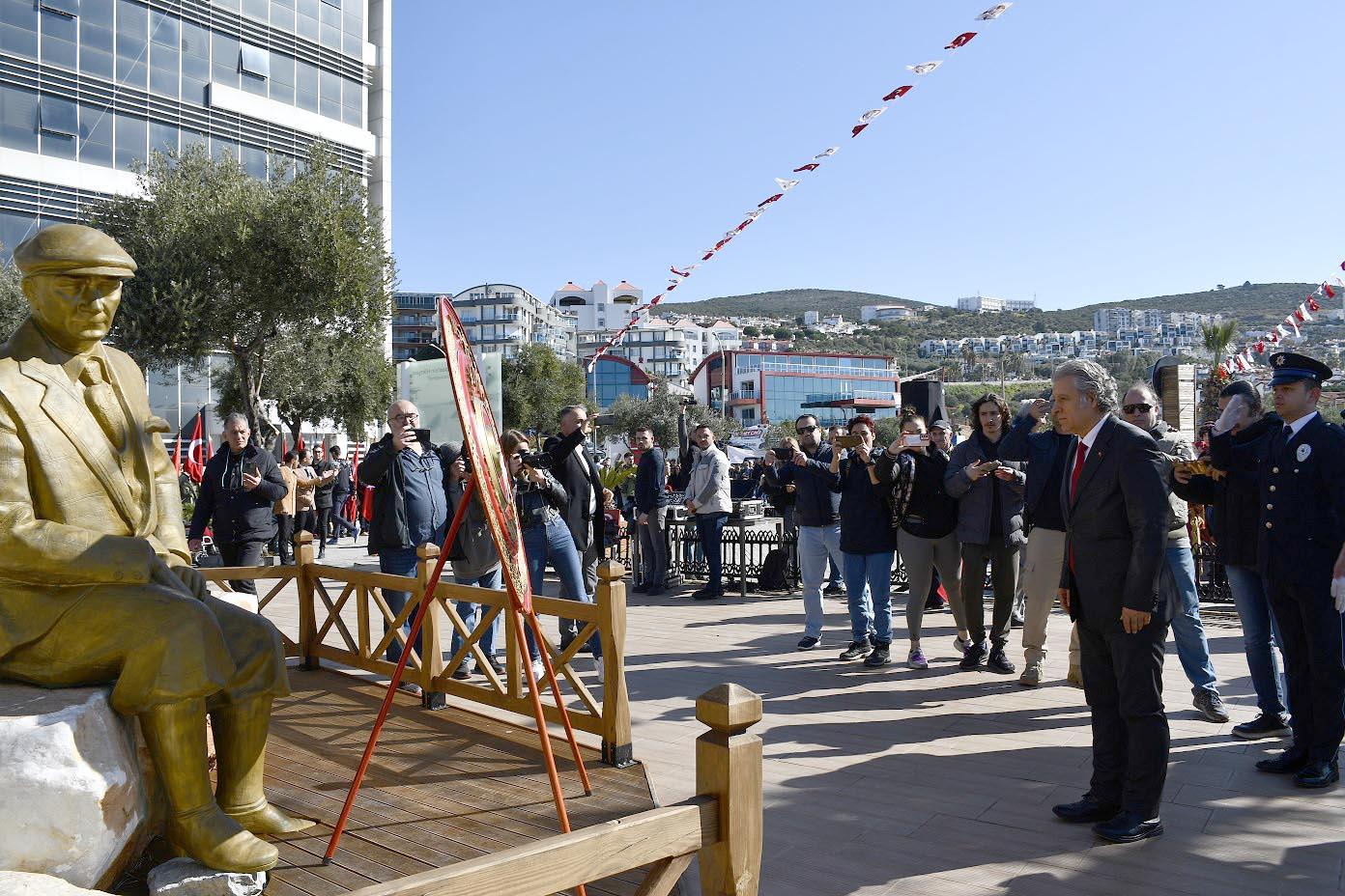 Türkiye Cumhuriyeti’nin kurucusu, Ulu Önder Mustafa Kemal Atatürk'ün Kuşadası’na gelişinin 100’üncü yıl dönümü dolayısıyla Gazibeğendi tepesi olan noktada kutlama töreni düzenlendi. Törene Kuşadası Kaymakamı İbrahim Keklik, Kuşadası Belediye Başkan Vekili Gürol Turhan, belediye başkan yardımcıları, belediye meclis üyeleri, idari ve mülki amirler, siyasi parti temsilcileri, kamu kurum ve kuruluşları, sivil toplum örgütlerinin yöneticileri ile öğrenciler ve vatandaşlar katıldı.