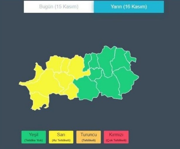 Meteoroloji 2. Bölge Müdürlüğü Tahmin ve Erken Uyarı Merkezi'nden yapılan açıklamada "Yağışların, Aydın il merkezi ile batı ilçelerinde (Kuşadası, Didim, Söke, Germencik, İncirliova, Koçarlı ve Karpuzlu) kuvvetli (21-60 kg/m) olması tahmin edilmektedir. Yağışların 16 Kasım 2024 23.59'a kadar devam etmesi beklenilmektedir. Oluşması muhtemel ani sel, su baskını, yıldırım, ulaşımda aksamalara karşı vatandaşlarımızın dikkatli olması gerekmektedir” ifadeleri yer aldı.