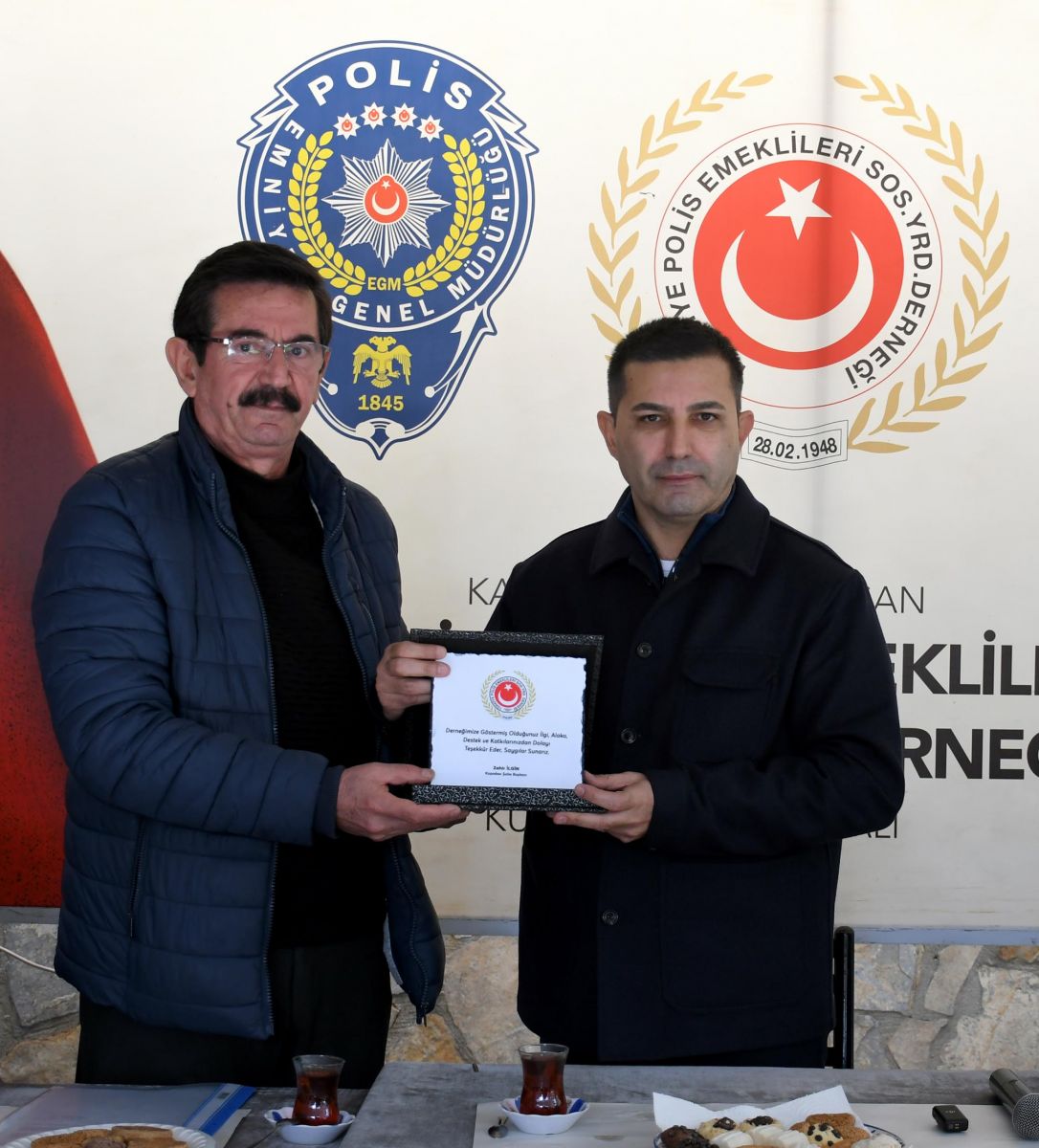 Başkan Ömer Günel, Kamu Yararına Çalışan Türkiye Polis Emeklileri Sosyal Yardım Derneği Kuşadası Şubesi Başkanı Zahir İlgin ve dernek yöneticileriyle bir araya geldi. Belediye Başkan yardımcısı Özgür Batçıoğlu’nun da katıldığı ziyarette, Başkan Ömer Günel dernek üyelerine bugüne kadar Kuşadası’nda gerçekleştirdikleri alt ve üstyapı yatırımları, süt ve beslenme desteği, öğrencilere sağlanan eğitim yardımı ve Adalı Kart uygulaması hakkında bilgi verdi. Bir sonraki dönemde yaşama geçireceği vizyon projelerle ilgili üyelerle fikir alış verişinde de bulunan başkan Ömer Günel, daha sonra gelen soruları yanıtladı. Toplantının sonundaysa dernek başkanı Zahir İlgin tarafından Başkan Ömer Günel’e teşekkür plaketi takdim edildi.