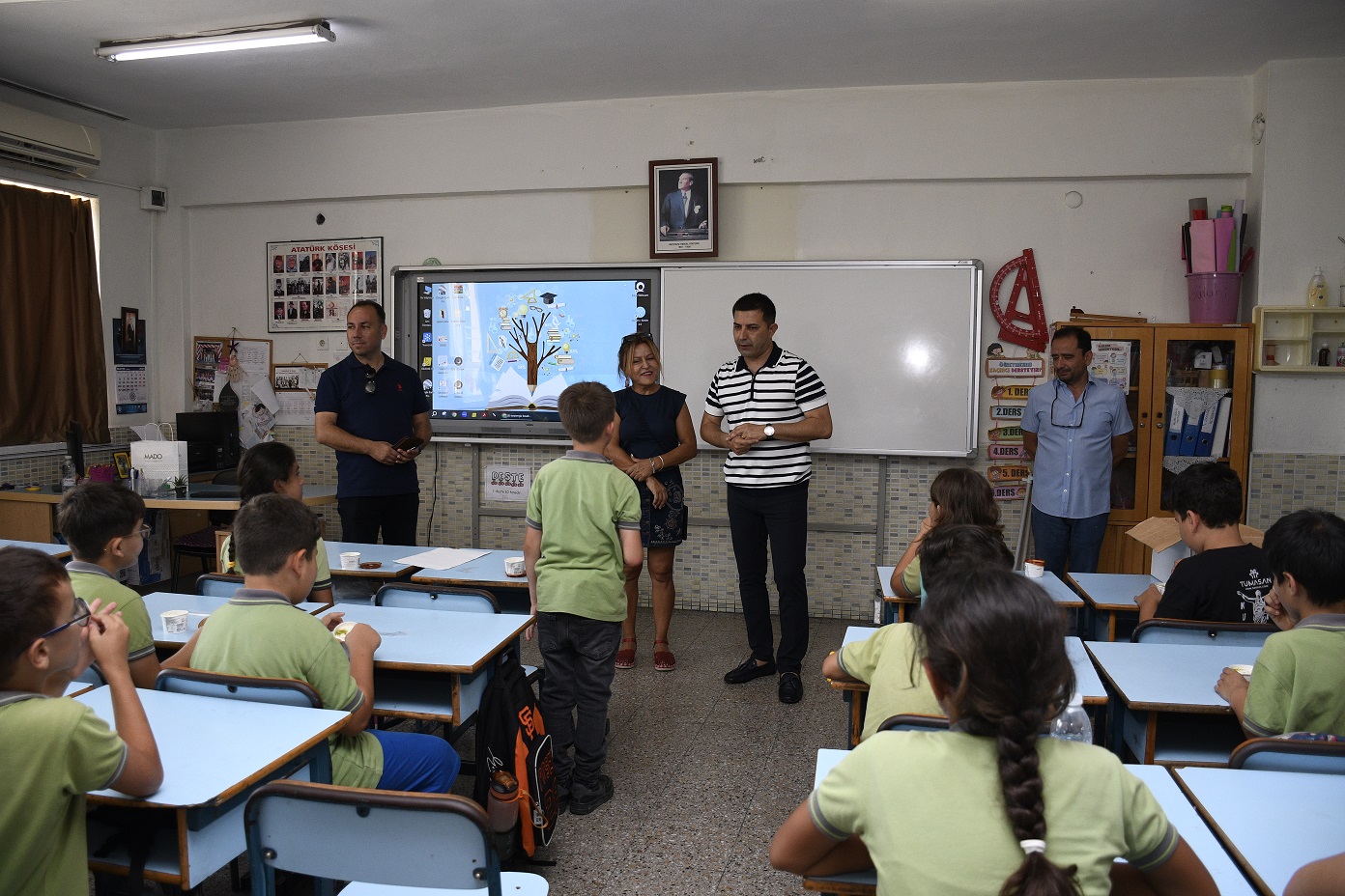 Kuşadalı çocuklar tarafından çok sevilen Başkan Ömer Günel, öğrencilerin daveti üzerine ziyaret ettiği Cumhuriyet İlkokulu’nda öğrenci ve öğretmenlerle bir araya geldi. Sınıfları gezen Başkan Ömer Günel’i karşısında gören öğrenciler büyük bir sevinç yaşadı. Öğrenciler ile tek tek ilgilenip sohbet eden Başkan Ömer Günel, istek ve talepleri dinledi. Başkan Günel, okul yöneticilerinden ve öğretmenlerden 30 Ekim 2020 tarihinde Ege Denizi’nde meydana gelen depremde zarar gördüğü için yıkımı gerçekleşen Cumhuriyet İlkokulu’nun durumu ile ilgili bilgi aldı.