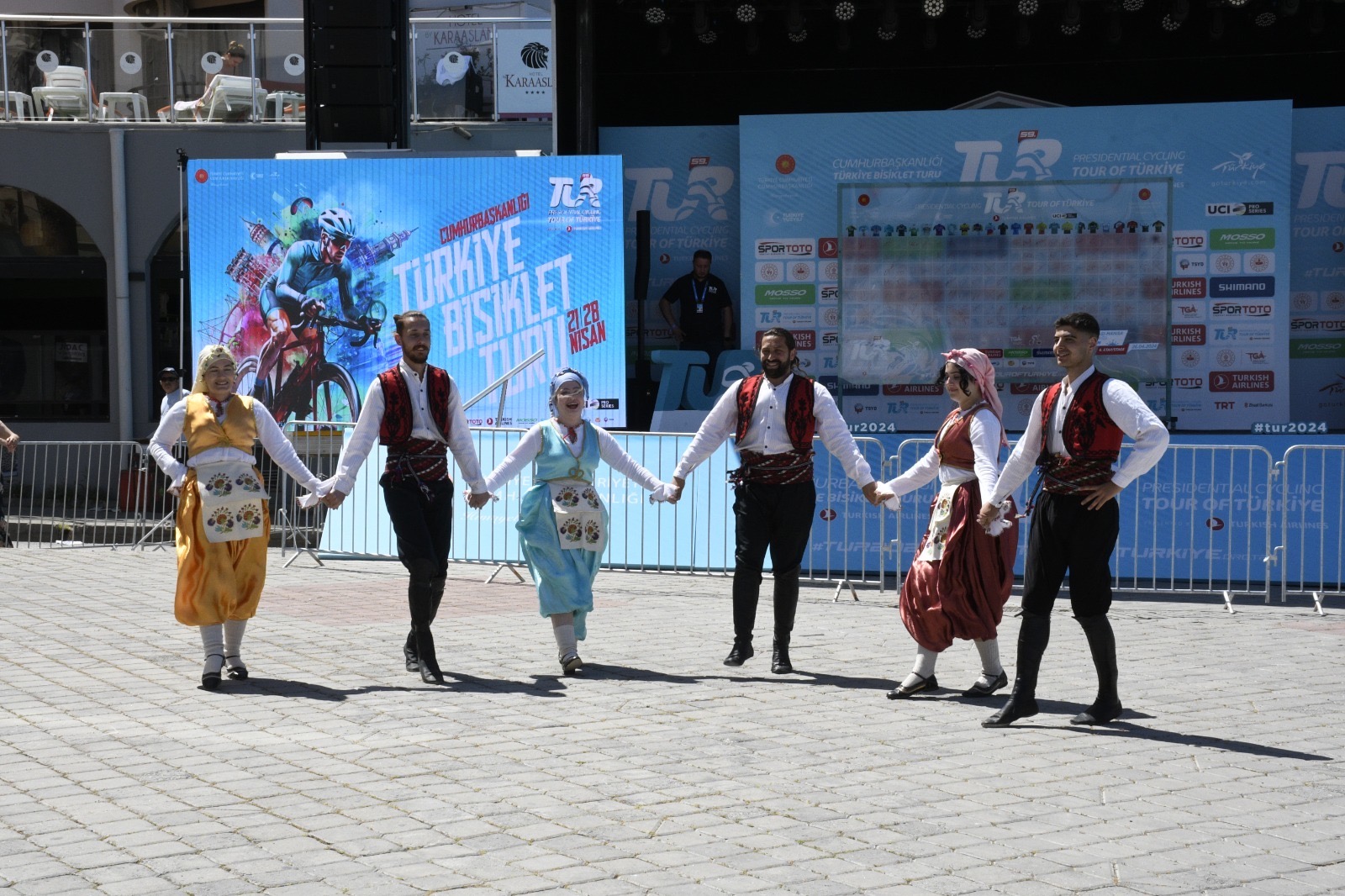 Geceyi kentte geçiren bisikletçiler, 160,1 kilometrelik Kuşadası-Manisa (Spil Dağı) etabı için kentte bulunan marina önündeki start noktasında sabah saatlerinden itibaren yerlerini aldı. Starttan önce bisikletçiler takım halinde başlangıç noktasının yakınında kurulan sahneye çağırılarak adlarının yazılı olduğu panoyu imzaladı. Etabın startını Kuşadası Kaymakamı İbrahim Keklik ve Türkiye Bisiklet Federasyonu Başkanı Emin Müftüoğlu saat 11:45’te birlikte verdi. Protokol üyeleri strattan önce turkuaz, kırmızı, yeşil ve beyaz mayo sahibi bisikletçilerle hatıra fotoğrafı da çektirdi. Kuşadası Belediyesi Halk Dansları Akademisi Spor Kulübü'nün (KUŞADANS) yarıştan önce sergiledikleri yöresel oyunlar beğeni topladı. Tour Of Turkey’in 177.9 kilometre uzunluğuna sahip bir önceki Bodrum-Kuşadası etabını DSM-Firmenich takımından Tobias Andresen 4 saat 18 dakika 11 saniyelik derecesiyle kazanmıştı.