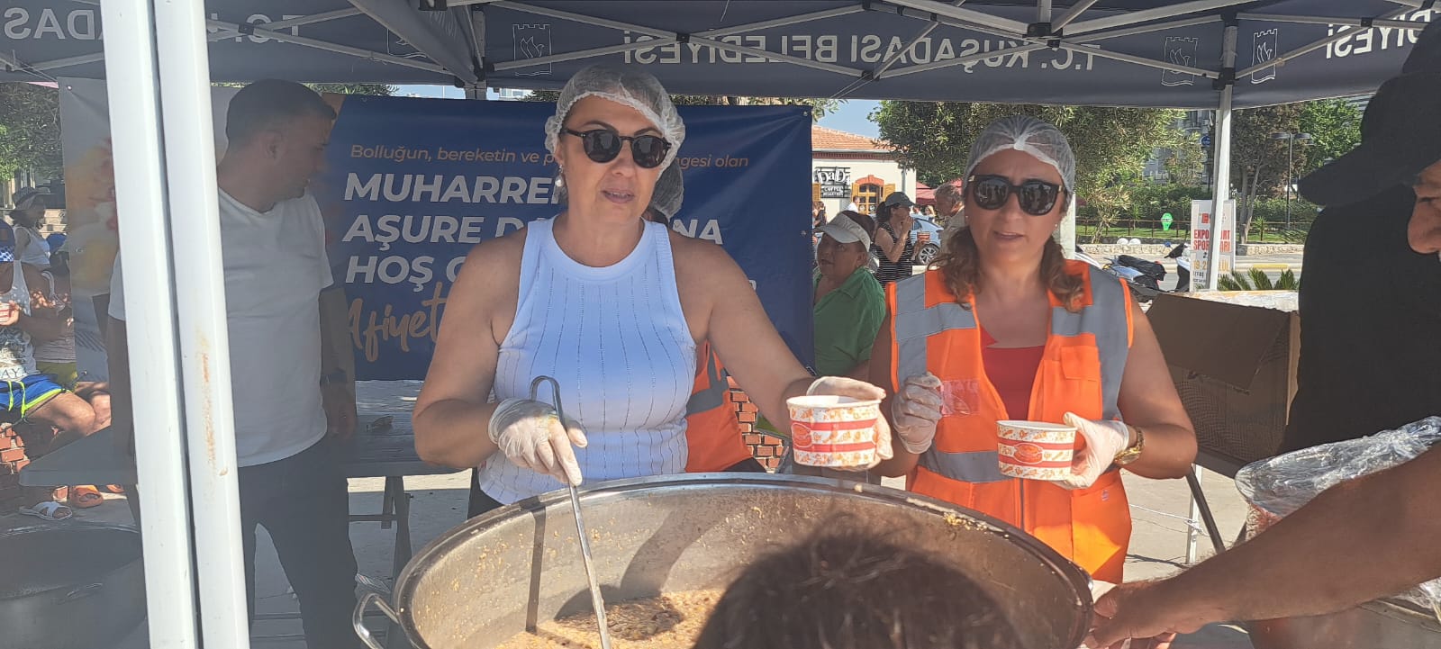 Kuşadası Belediyesi bu yıl Muharrem ayında aşurenin bereketini 8 bin kişiyle paylaştı. Sosyal Yardım İşleri Müdürlüğü ekipleri tarafından İsmail Cem Dostluk ve Barış Meydanı, İkioluklu Mevkii, İkiçeşmelik, Karaova, Davutlar ve Güzelçamlı mahallelerinde kurulan çadırlarda vatandaşlara aşure ikramında bulunuldu.