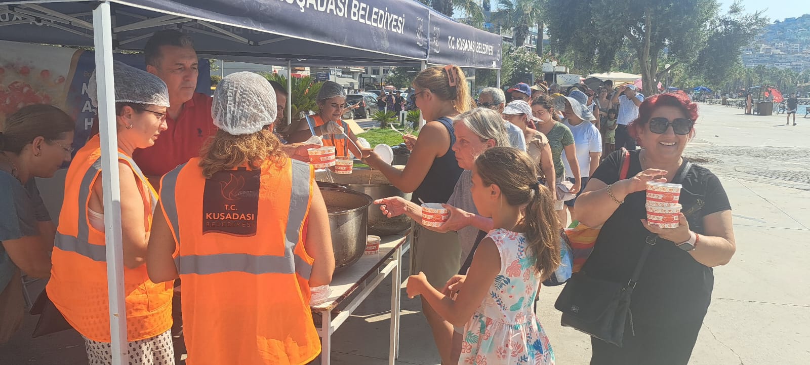 İsmail Cem Dostluk ve Barış Meydanı’nda gerçekleşen aşure ikramına Kuşadası Belediye Başkan Vekili Ethem Kerim ile Kuşadası Belediye Başkan Yardımcısı Yusuf Atak katıldı. Aşurenin birlik, beraberlik, paylaşım ve bereket sembolü olduğunu belirten Başkan Vekili Ethem Kerim “Kentimizde bir Muharrem ayını daha sevgi, dostluk ve dayanışma duyguları ile tamamlayarak aşuremizi paylaştık. Herkese afiyet olsun” dedi.