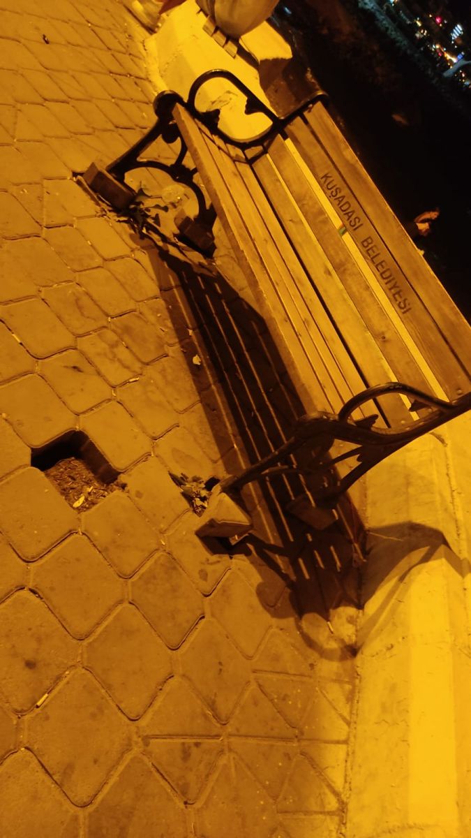 Atatürk Bulvarı sahiline vatandaşların dinlenmesi için Kuşadası Belediyesi tarafından konulan banklardan biri, dün gece saat 01:50 sıralarında 4 erkek şahıs tarafından bulunduğu yerden söküldü. Bankı ters yöne çeviren vandalların görüntüleri, çevredeki bir iş yerinin güvenlik kamerasına yansıdı. Kuşadası Belediyesi de olaydan sonra harekete geçerek polise şikayette bulundu. Kuşadası Belediyesi yetkilileri, bankın bulunduğu zemindeki kaldırım taşlarının da zarar gördüğü çirkin olayın sorumlularının belirlenmesi ve gerekli cezayı almaları için konunun sonuna kadar takipçisi olacaklarını belirtti.
