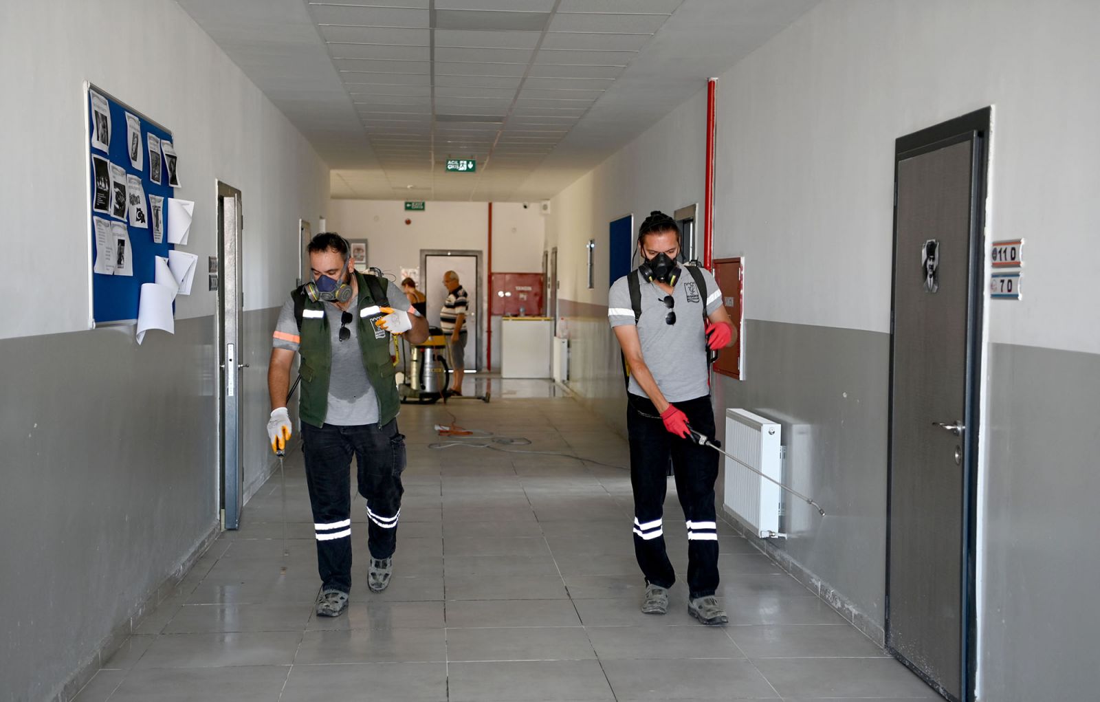 sınıflar, laboratuvarlar, yemekhane, spor salonu ve tuvalet gibi tüm alanlar ilaçlanıyor. Çalışmayı