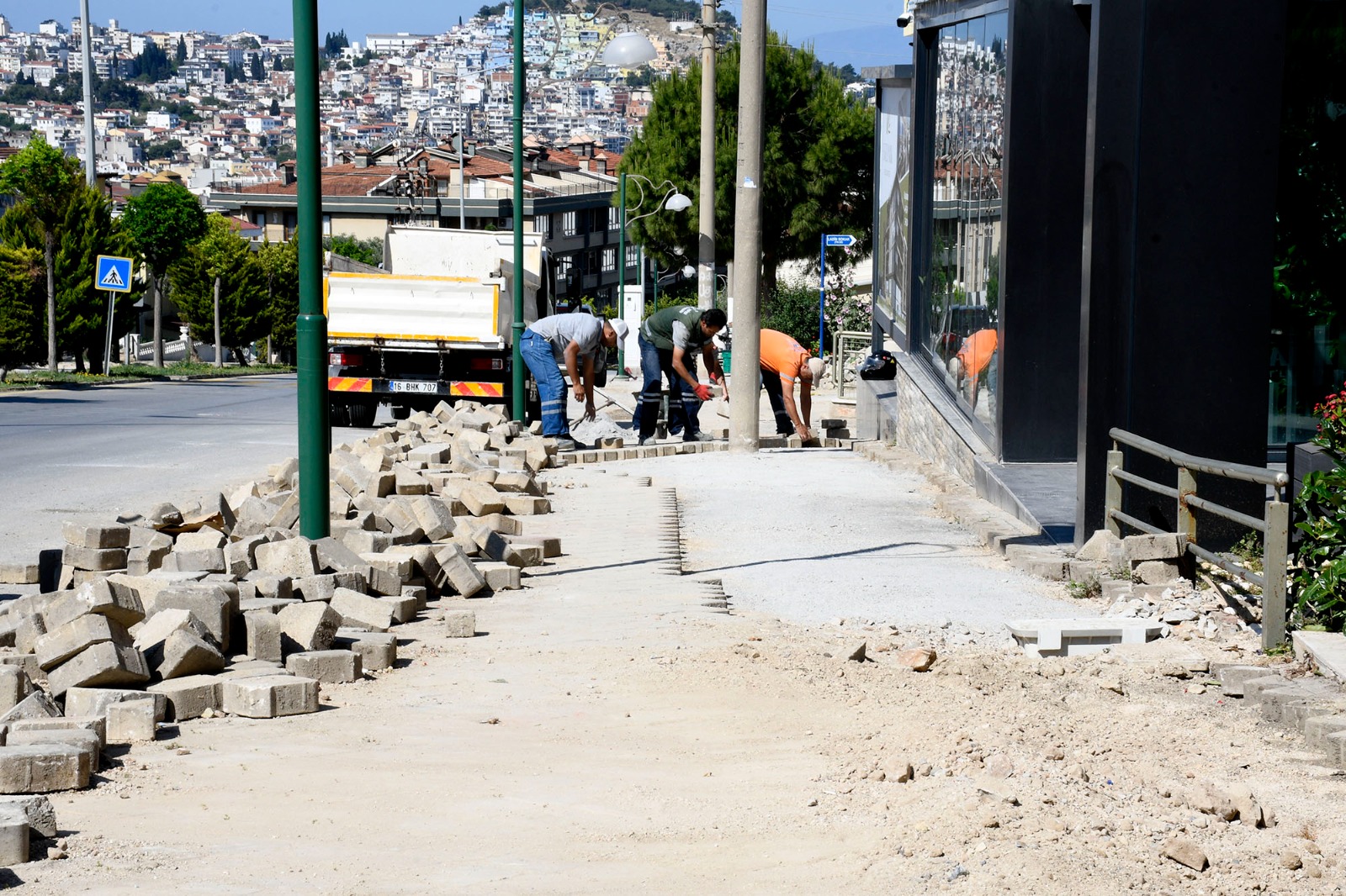 Bir yandan farklı mahallelerde parke, asfalt ve sathi kaplama çalışmalarına devam eden Kuşadası Belediyesi ekipleri, bir yandan da 7/24 mesai yapan Acil Müdahale Birimi aracılığıyla tamirat ve tadilat çalışmalarını vakit kaybetmeksizin tamamlıyor.