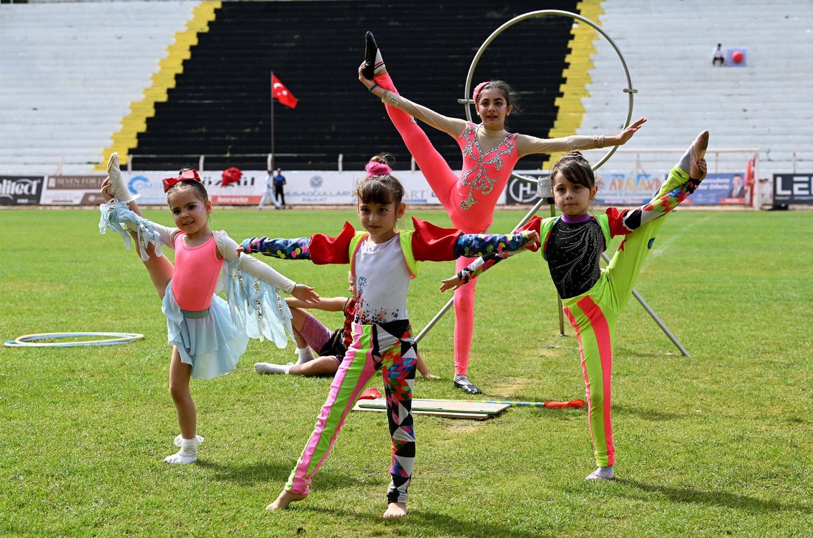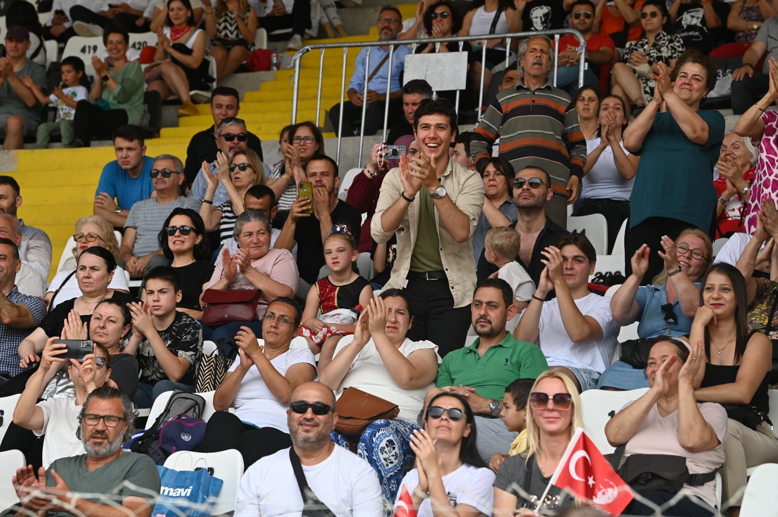 Özer Türk Stadı’ndaki programda, saygı duruşunda bulunulması ve İstiklal Marşı'nın okunmasından sonra Kuşadası Kaymakamı İbrahim Keklik ve Belediye Başkanı Ömer Günel, törene katılan öğrenciler ve vatandaşların bayramını kutladı. Günün anlam ve önemini belirten konuşmaların ardından dans ve jimnastik gösterileri sergilendi. Kutlama programında lise öğrencileri tarafından okunan “Atatürk’ün Gençliğe Hitabesi ve Gençliğin Ata’ya Cevabı” Kuşadalılar tarafından ayakta alkışlandı.