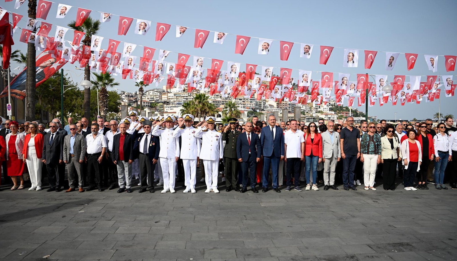 Kuşadası’nda 19 Mayıs Atatürk’ü Anma Gençlik ve Spor Bayramı kutlamaları, saat 09:00’da sahilde bulunan Atatürk Anıtı’na Gençlik ve Spor İlçe Müdürü Ramazan Oğuz Verim tarafından çelenk sunulmasıyla başladı. Ardından Özer Türk Stadı’nda devam eden resmi törene Kuşadası Kaymakamı İbrahim Keklik, Kuşadası Belediye Başkanı Ömer Günel, Kuşadası İlçe Emniyet Müdürü Mehmet Ali Berksoy, Kuşadası İlçe Milli Eğitim Müdürü İbrahim Ataman, belediye meclis üyeleri, kentte görev yapan idari ve mülki amirler, siyasi parti ve sivil toplum kuruluşlarının temsilcileri, Kuşadası’nın Fransa’daki kardeş şehri olan Creil’den gelen heyet ve çok sayıda vatandaş katıldı.