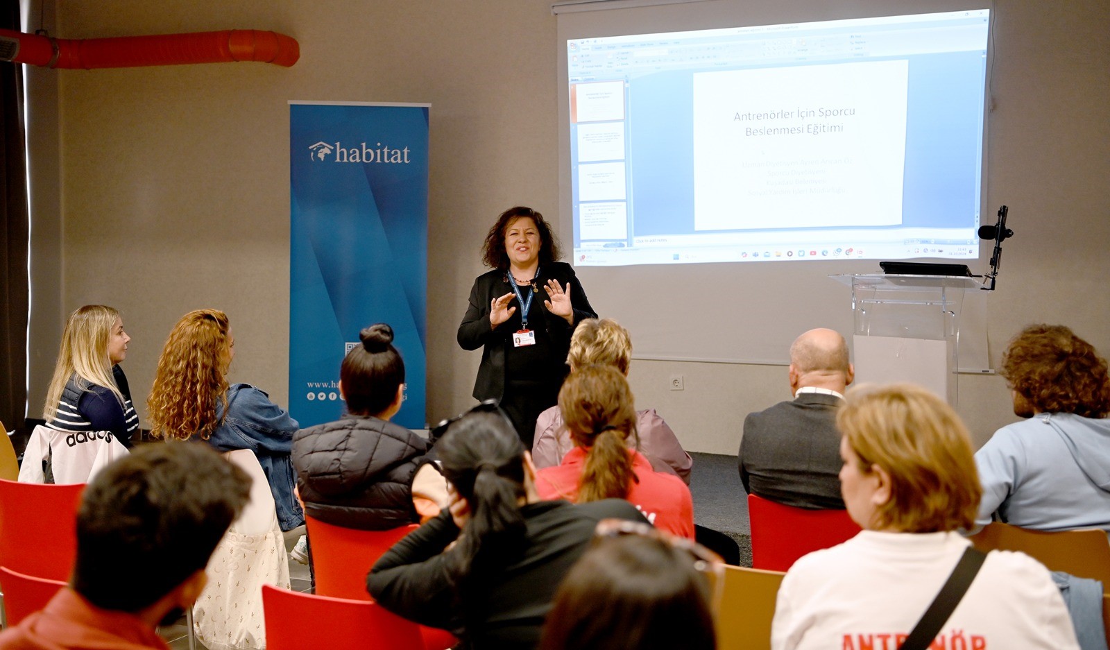 Söyleşide Kuşadası Belediyesi Sosyal Yardım İşleri Müdürlüğü’nde görevli sporcu diyetisyeni Aysen Arıcan, antrenörlere barkovizyon eşliğinde sporcu beslenmesinin genel ilkeleri, farklı spor dallarında beslenme, antrenman öncesi beslenme, müsabaka dönemlerinde beslenme, karbonhidrat yükleme ve besinsel ergojenik destekler gibi başlıklar altında bilgi aktardı. Arıcan, söyleşinin son bölümünde ise gelen soruları yanıtladı.