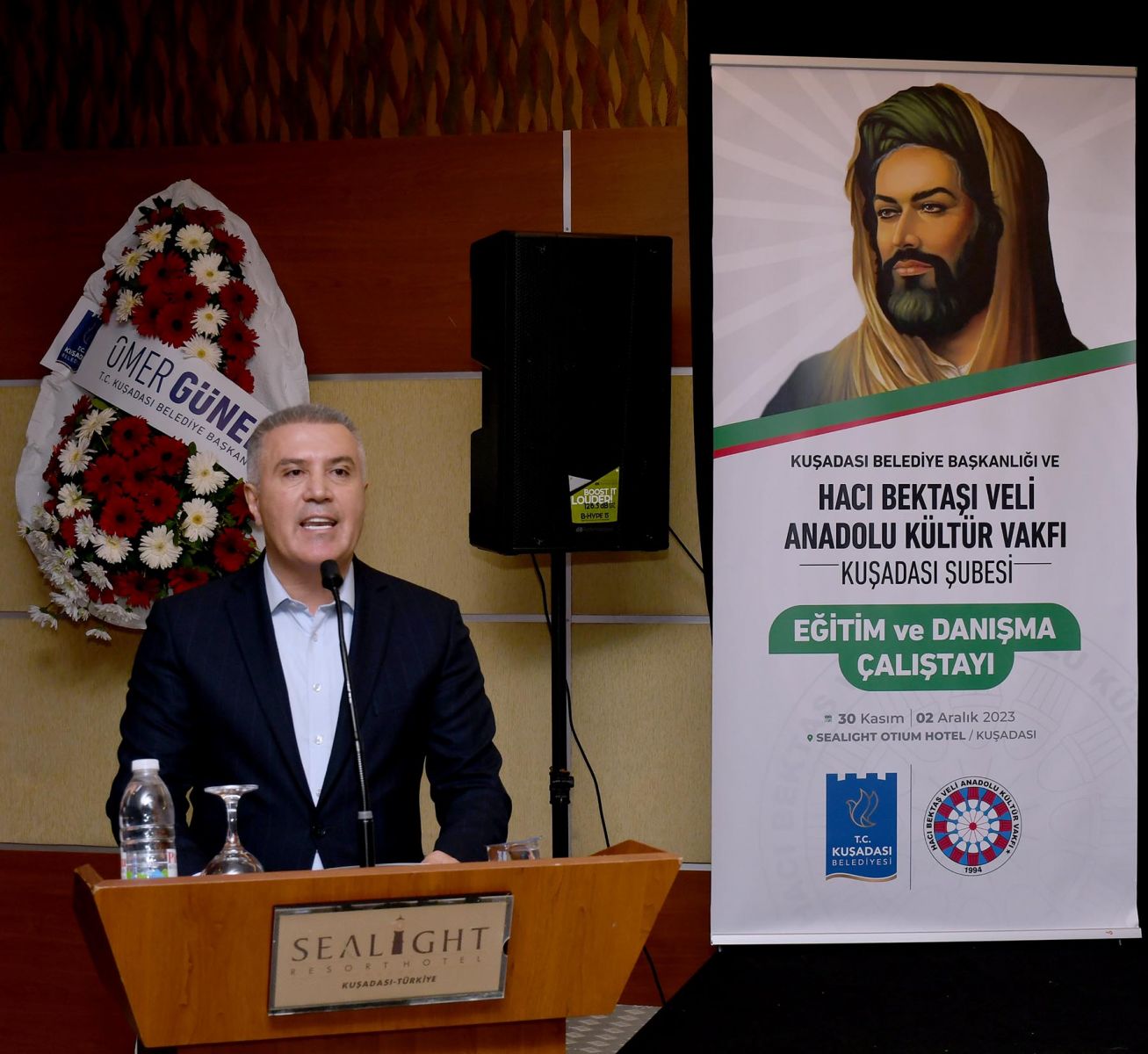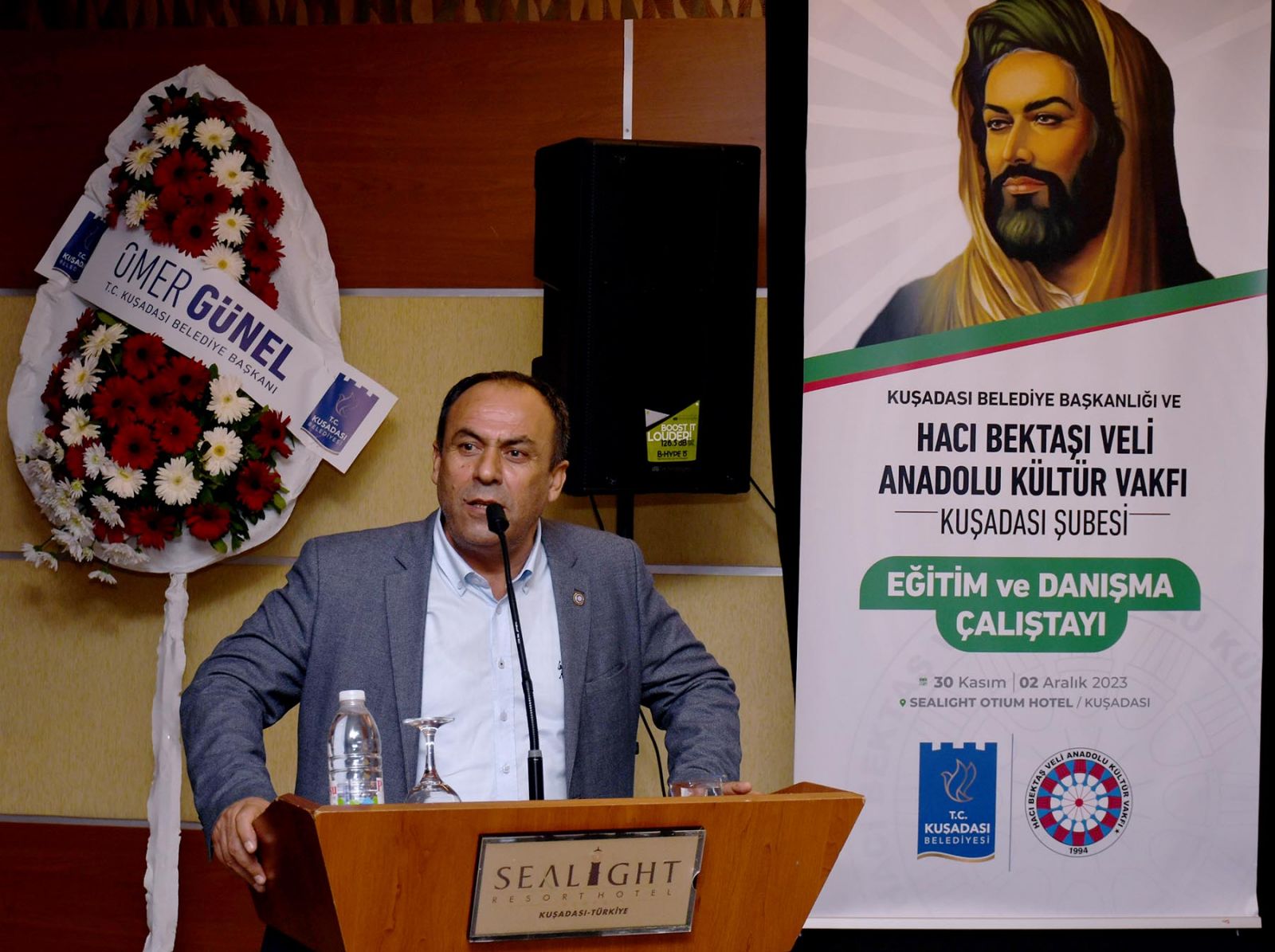 Kuşadası’nda, Hacı Bektaş Veli Anadolu Kültür Vakfı tarafından Kuşadası Belediyesi’nin katkılarıyla düzenlenen eğitim ve danışma çalıştayı başladı. İki gün sürecek olan çalıştayda bir konuşma yapan Kuşadası Belediye Başkan Vekili Oğuzhan Turan, “Başkanımız Ömer Günel, kentimizde yaşayan tüm farklı kültür ve inanca sahip hemşehrilerimiz için olduğu gibi Alevi canlarımızın talep ve önerilerini de yerine getirmeyi bir görev olarak görmektedir” dedi.