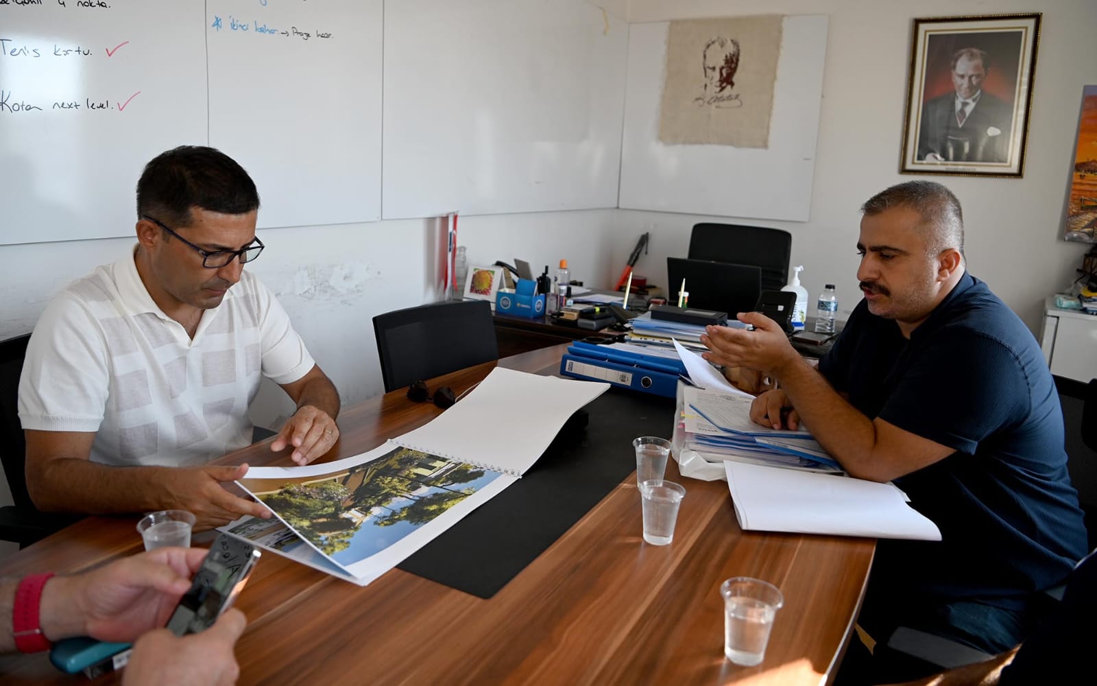Başkan Ömer Günel, Kadınlar Denizi Mahallesi’nin ardından Şevki Hasırcı Meydanı’nın bulunduğu bölgeyle Devrim Sokak’ta yapılacak minibüs durakları düzenlemesi ile ilgili UKOME yetkilileri ve Kuşadası Şoförler ve Otomobilciler Esnaf Odası Başkanı Hüsnü Öten ile fikir alışverişinde bulundu. Dolmuş duraklarının mezarlık bölgesine alınacağı, Park ve Bahçeler Müdürlüğü ekiplerinin ise Devrim Sokak’ta peyzaj düzenlemesi yürüteceğini belirten Başkan Ömer Günel, saha gezisine kilit parke taşı döşenecek olan Ege Mahallesi 470’inci Sokak ile devam etti. Sıcak asfaltla kaplanacak olan Değirmendere Mahallesi Göcek Kavağı 2’inci Sokak’taki çalışmaları da inceleyen Başkan Ömer Günel, son olarak Fen İşleri Müdürlüğü şantiyesinde, Kesedağı mesire alanı projesinin detaylarını inceledi.
